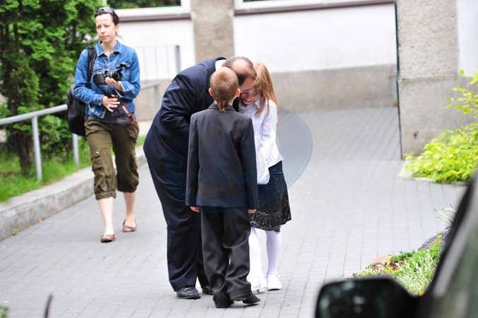 Przemyslaw Edgar Gosiewski odbiera dzieci ze szkoly po zakonczeniu roku szkolnego, Warszawa 2009