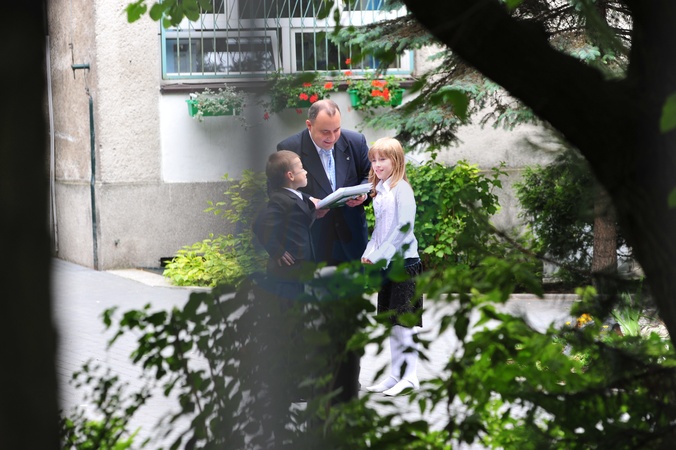 Przemyslaw Edgar Gosiewski odbiera dzieci ze szkoly po zakonczeniu roku szkolnego, Warszawa 2009