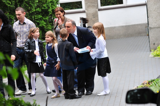 Przemyslaw Edgar Gosiewski odbiera dzieci ze szkoly po zakonczeniu roku szkolnego, Warszawa 2009