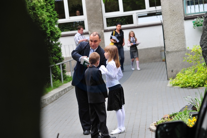 Przemyslaw Edgar Gosiewski odbiera dzieci ze szkoly po zakonczeniu roku szkolnego, Warszawa 2009