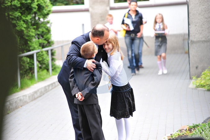 Przemyslaw Edgar Gosiewski odbiera dzieci ze szkoly po zakonczeniu roku szkolnego, Warszawa 2009