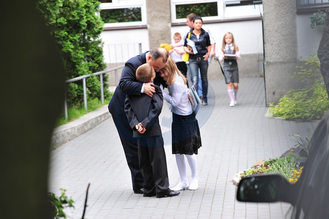 Przemyslaw Edgar Gosiewski odbiera dzieci ze szkoly po zakonczeniu roku szkolnego, Warszawa 2009