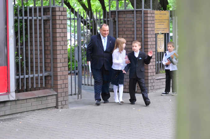 Przemyslaw Edgar Gosiewski odbiera dzieci ze szkoly po zakonczeniu roku szkolnego, Warszawa 2009