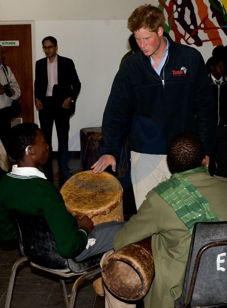 Ksiaze William i ksiaze Harry podczas wizyty w Mokolodi Education Centre, Botswana
