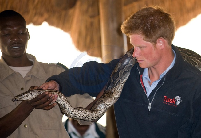 Ksiaze William i ksiaze Harry podczas wizyty w Mokolodi Education Centre, Botswana