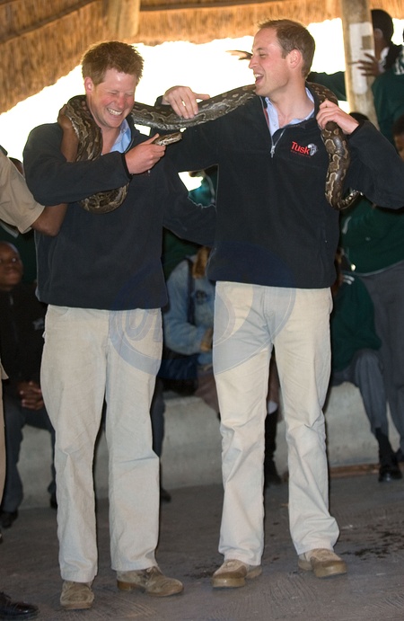 Ksiaze William i ksiaze Harry podczas wizyty w Mokolodi Education Centre, Botswana