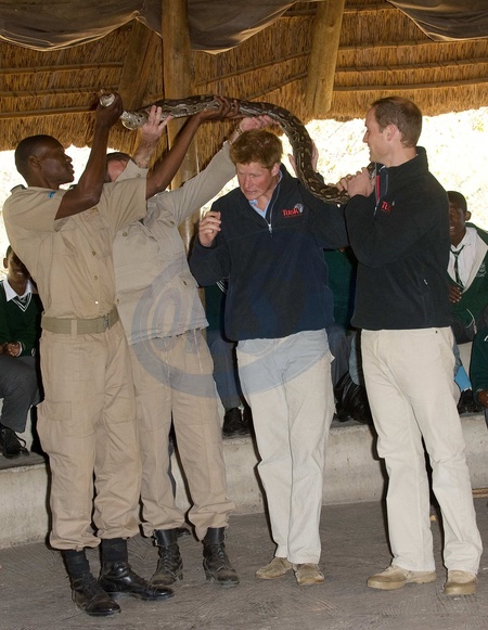 Ksiaze William i ksiaze Harry podczas wizyty w Mokolodi Education Centre, Botswana
