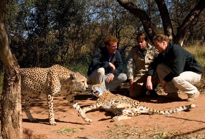 Ksiaze William i ksiaze Harry podczas wizyty w Mokolodi Education Centre, Botswana