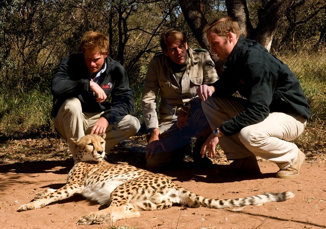 Ksiaze William i ksiaze Harry podczas wizyty w Mokolodi Education Centre, Botswana