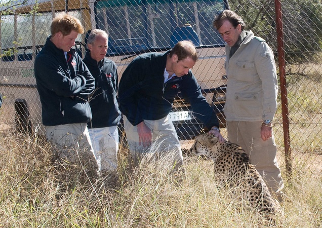 Ksiaze William i ksiaze Harry podczas wizyty w Mokolodi Education Centre, Botswana