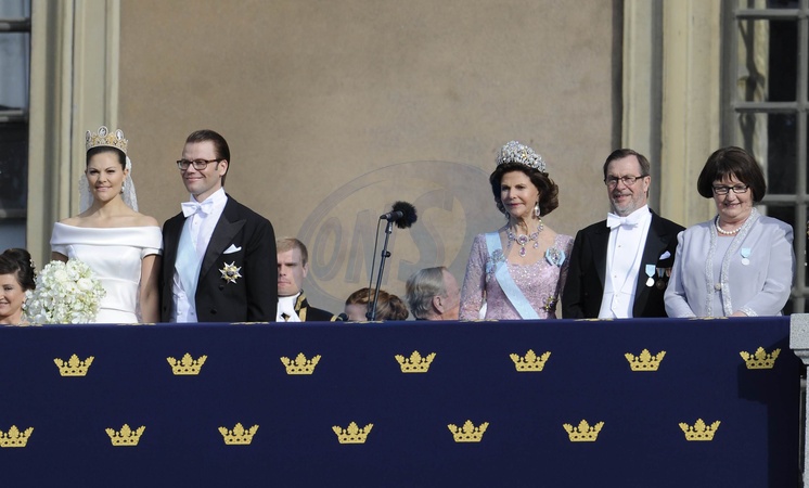 Ksiezniczka Wiktoria i Ksiaze Daniel Westling z rodzicami Ewa i Olle Westling, Krolowa Silvia