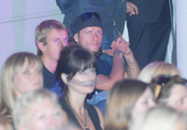 Radoslaw Majdan z kolegami ogladal pokaz z ostatniego rzedu na schodach