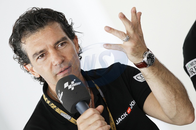 Antonio Banderas podczas konferencji MOTOGP w Barcelonie, Hiszpania