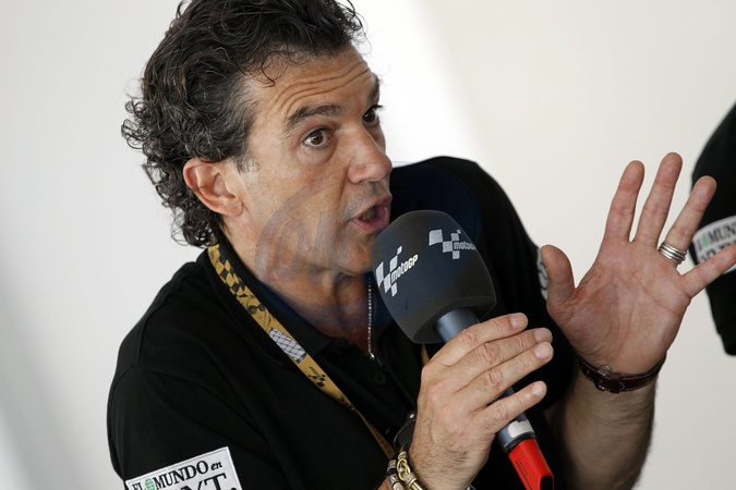 Antonio Banderas podczas konferencji MOTOGP w Barcelonie, Hiszpania
