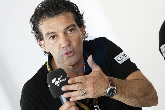 Antonio Banderas podczas konferencji MOTOGP w Barcelonie, Hiszpania
