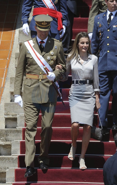 Ksiaze Filip i Letizia podczas 35. ceremonii w Hiszpanskiej Akademii Wojskowej, Talarn Lleida