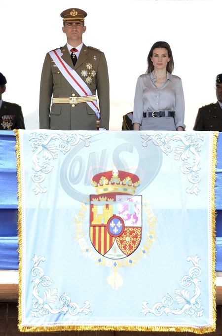 Ksiaze Filip i Letizia podczas 35. ceremonii w Hiszpanskiej Akademii Wojskowej, Talarn Lleida