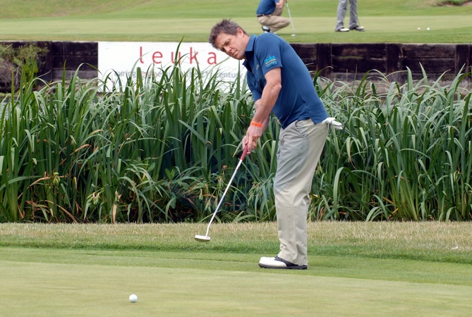 Hugh Grant na charytatywnym turnieju golfowym, Londyn