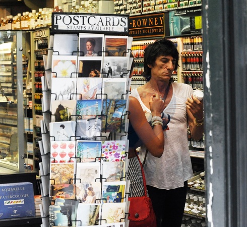 Ronnie Wood i Ana Araujo z dziewczyna na zakupach, Londyn