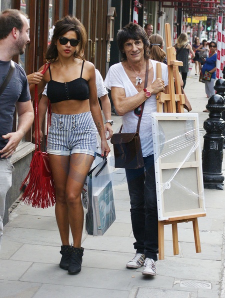 Ronnie Wood i Ana Araujo z dziewczyna na zakupach, Londyn