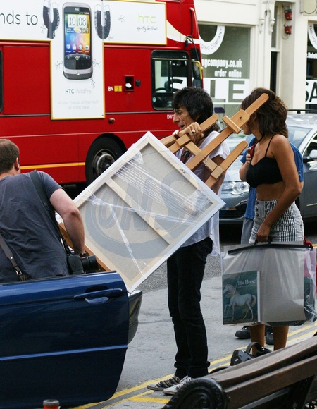 Ronnie Wood i Ana Araujo z dziewczyna na zakupach, Londyn