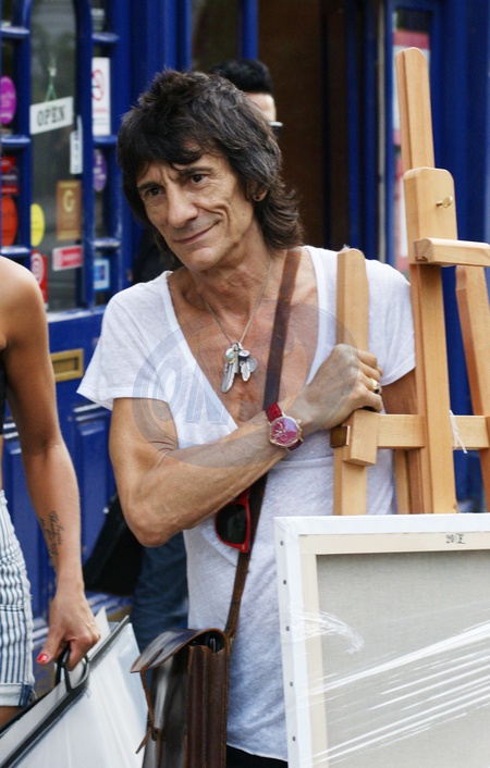 Ronnie Wood i Ana Araujo z dziewczyna na zakupach, Londyn