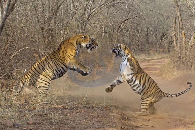 Walka tygrys?w w Parku Narodowym Ranthambhore w Indiach