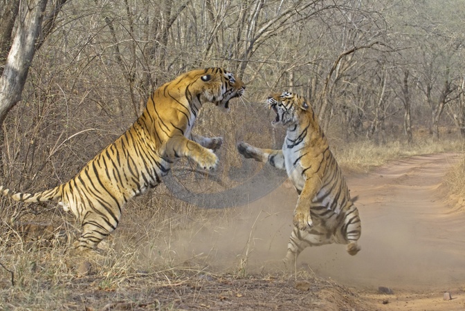 Walka tygrys?w w Parku Narodowym Ranthambhore w Indiach