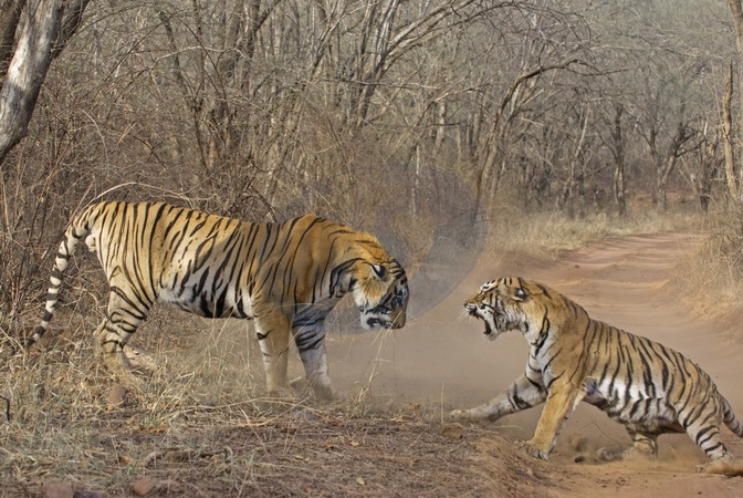Walka tygrys?w w Parku Narodowym Ranthambhore w Indiach