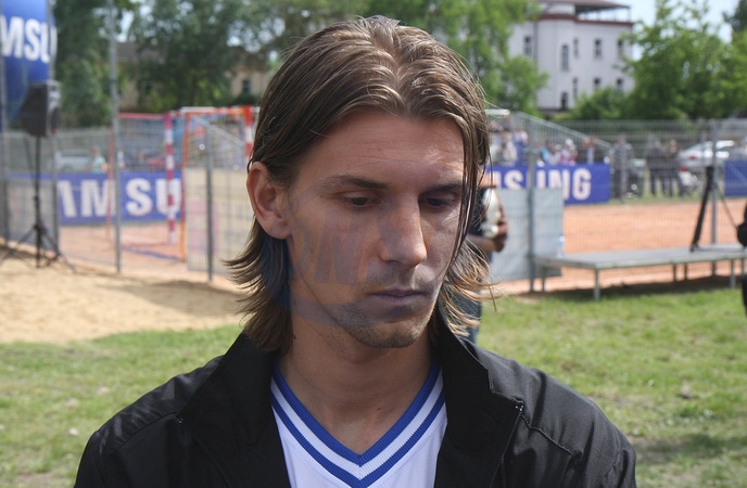 Ebi Smolarek w pokazowym meczu z dziecmi na warszawskiej Pradze, Warszawa 2008