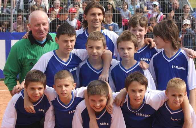 Ebi Smolarek w pokazowym meczu z dziecmi na warszawskiej Pradze, Warszawa 2008