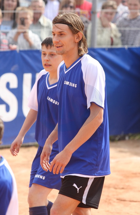 Ebi Smolarek w pokazowym meczu z dziecmi na warszawskiej Pradze, Warszawa 2008