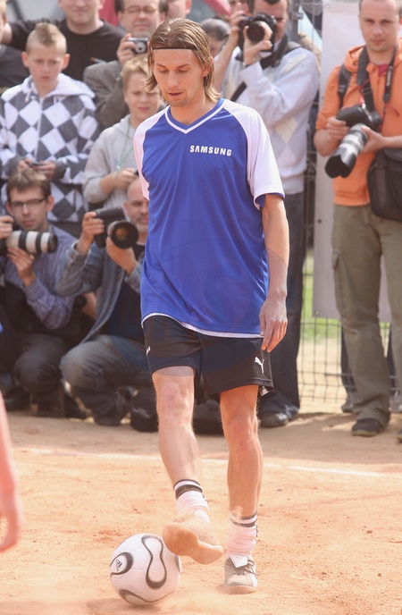 Ebi Smolarek w pokazowym meczu z dziecmi na warszawskiej Pradze, Warszawa 2008