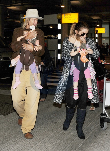 Lisa Marie Presley z mezem i dziecmi na lotnisku, Londyn