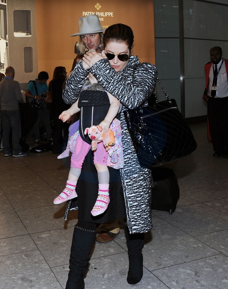Lisa Marie Presley z mezem i dziecmi na lotnisku, Londyn