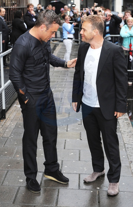Robbie Williams i Gary Barlow spotkali sie przed siedziba Radio 1 w Londynie