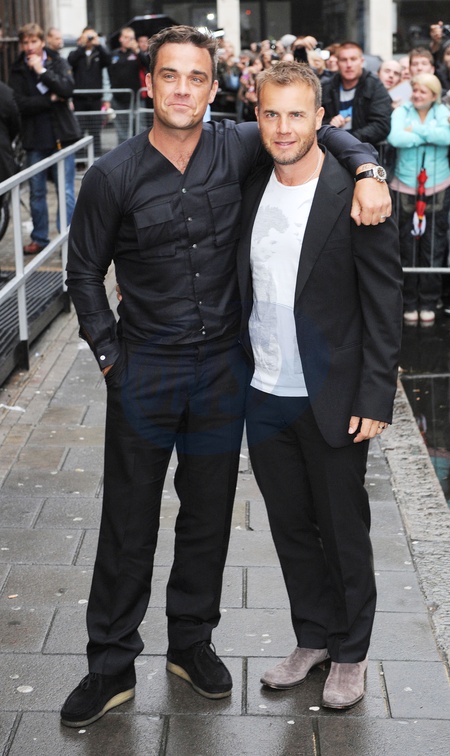 Robbie Williams i Gary Barlow spotkali sie przed siedziba Radio 1 w Londynie
