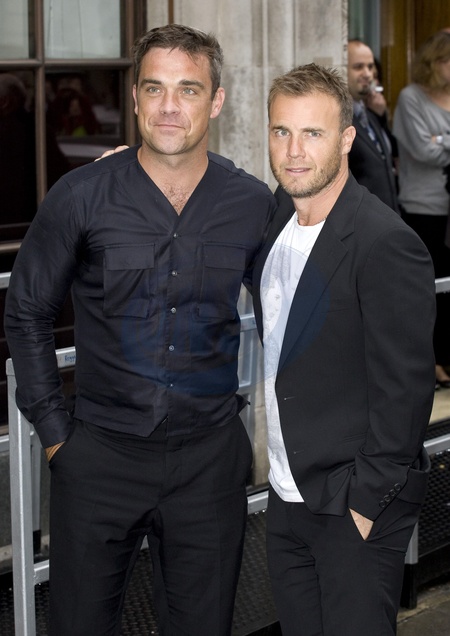 Robbie Williams i Gary Barlow spotkali sie przed siedziba Radio 1 w Londynie