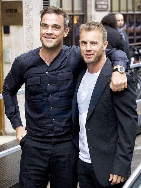 Robbie Williams i Gary Barlow spotkali sie przed siedziba Radio 1 w Londynie