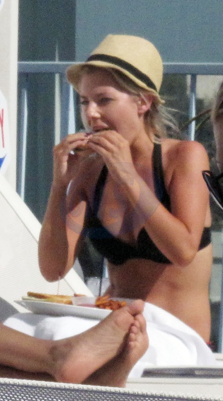 Dziewczyny z The Saturdays popoludniami wypoczywaja na hotelowym basenie, Los Angeles