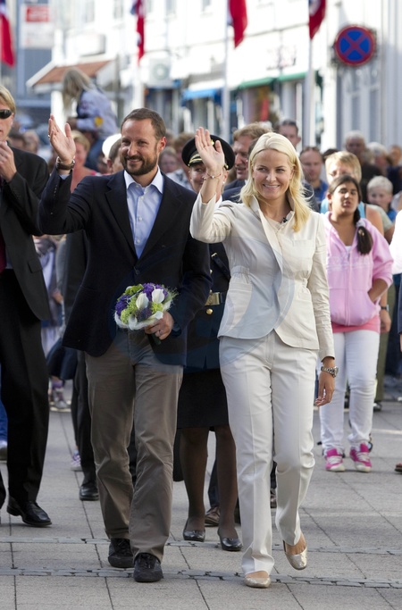 Ksiaze Haakon, Ksiezna Mette-Marit podczas wizyty w Aust-Agder w poludniowej Norwegii