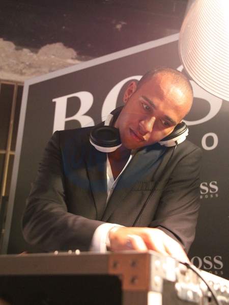Lewis Hamilton jako DJ w sklepie Hugo Bossa, Mediolan