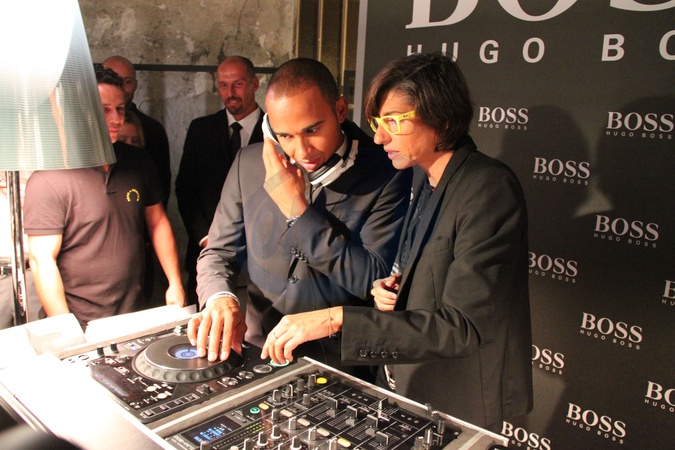 Lewis Hamilton jako DJ w sklepie Hugo Bossa, Mediolan