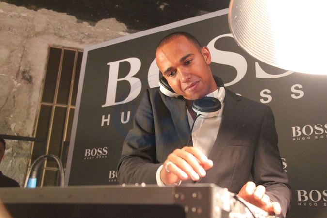 Lewis Hamilton jako DJ w sklepie Hugo Bossa, Mediolan