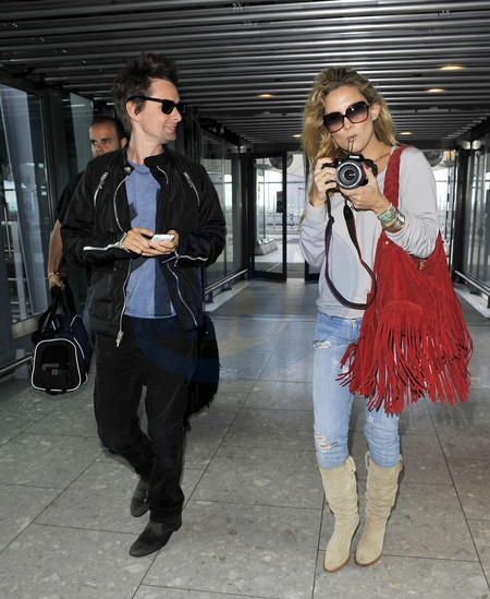 Kate Hudson i jej chlopak Matt Bellamy na lotnisku Heathrow w Londynie