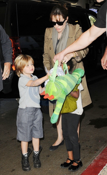 Angelina Jolie z corkami na lotnisku w Los Angeles