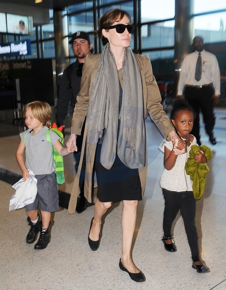 Angelina Jolie z corkami na lotnisku w Los Angeles