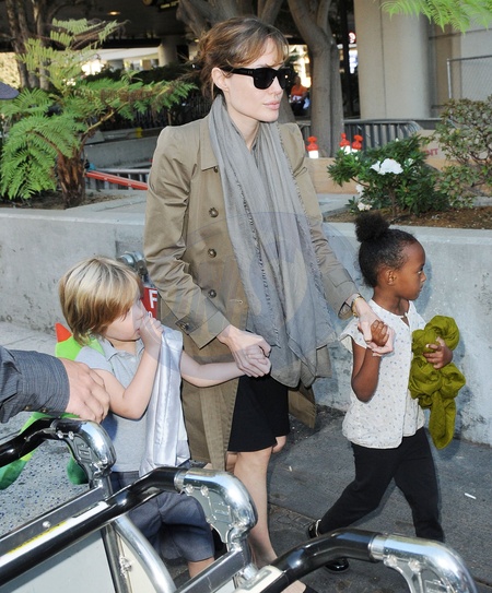 Angelina Jolie z corkami na lotnisku w Los Angeles