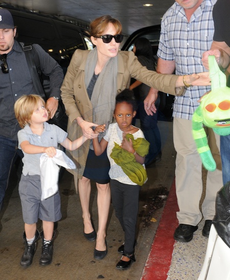 Angelina Jolie z corkami na lotnisku w Los Angeles