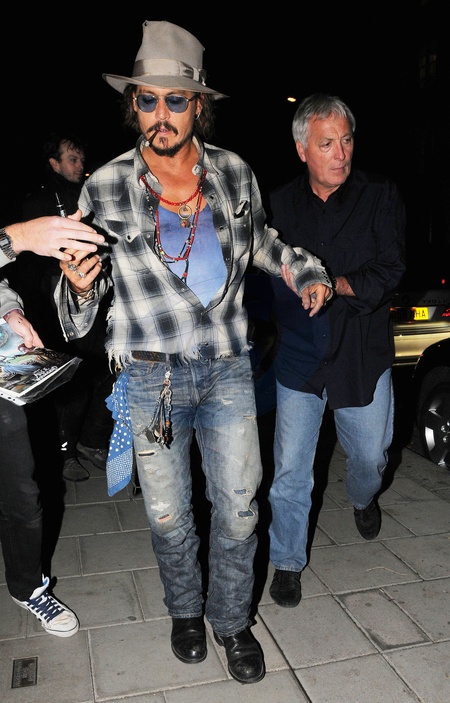 Johnny Depp i Keith Richards wracaja z restauracji, Londyn